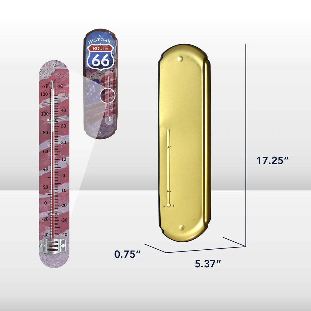 Historic Route 66 Metal Thermometer Sign 17.25" Vintage Wall Decor Dual-Scale