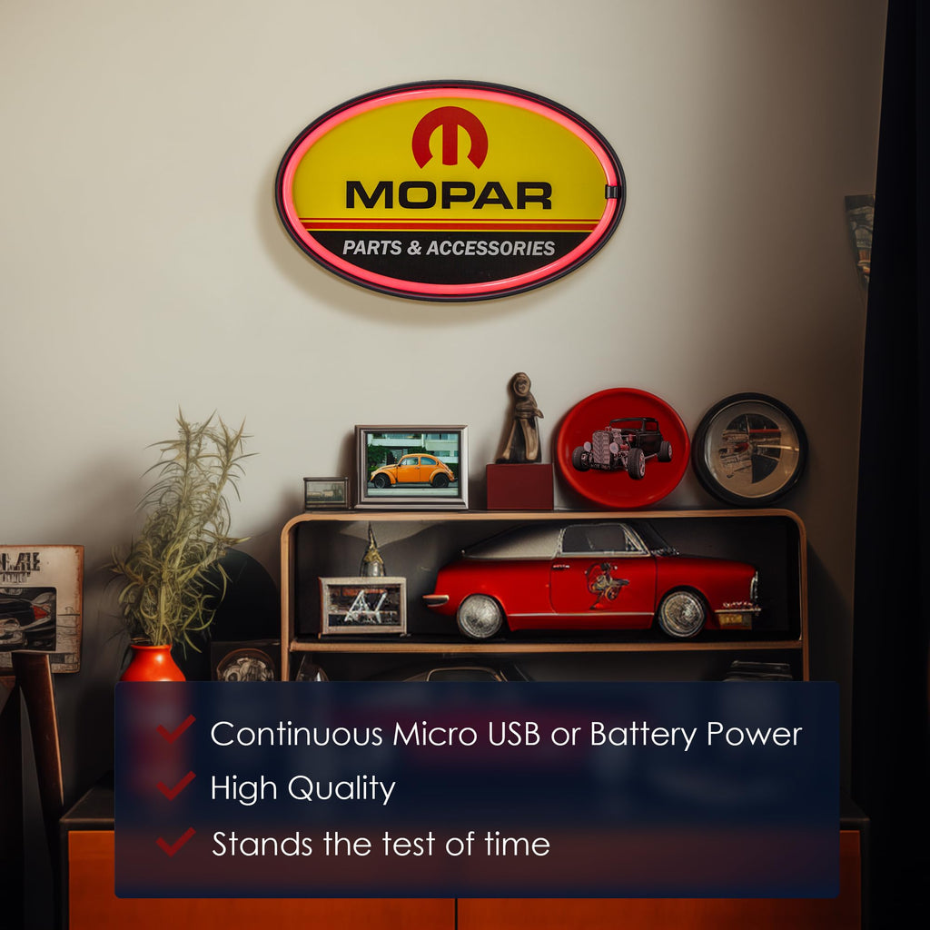 Mopar Parts & Accessories Oval LED Neon-Style Wall Sign – Red/Yellow – USB or Battery