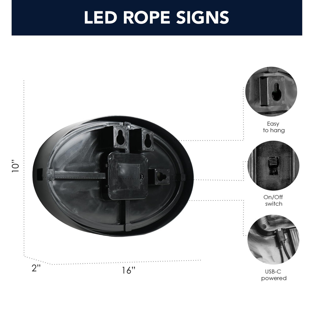- Contents: (1) LED sign, (1) 6' USB power cord, (1) wall plug